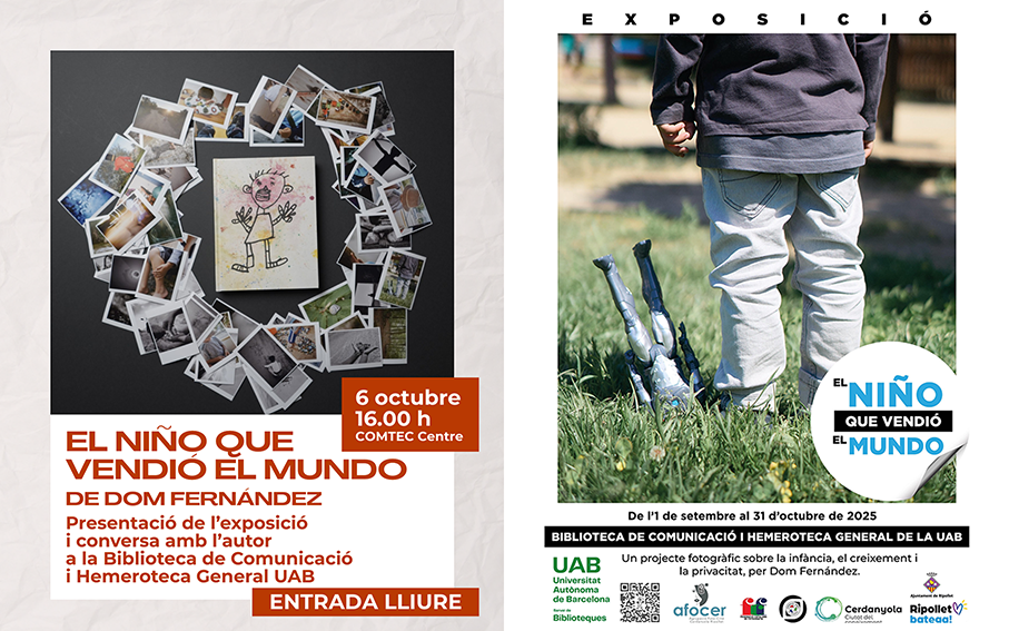 Del 1 de septiembre al 31 de octubre de 2025, se podrá visitar en la Biblioteca de Comunicació i Hemeroteca General de la UAB, la exposición “El niño que vendió el mundo" del socio de Afocer Dom Fernández.