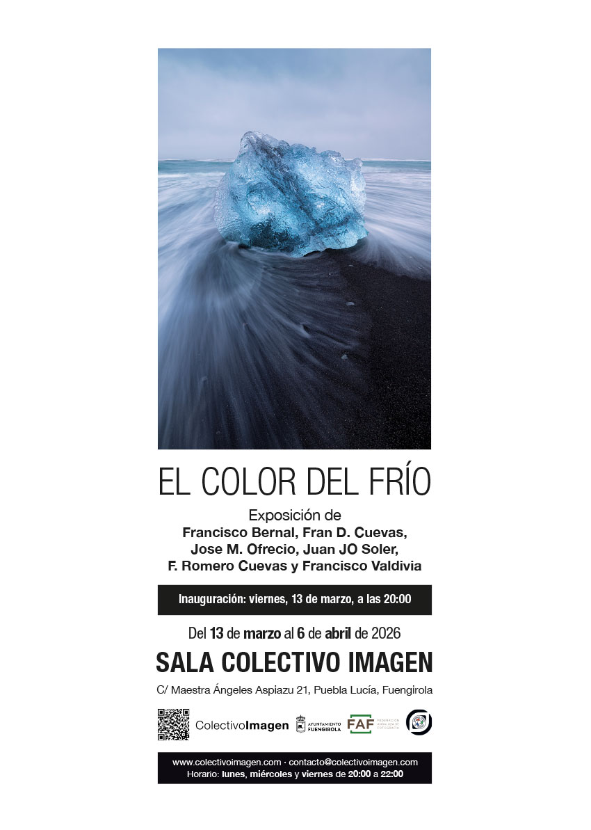 Desde el viernes 13 de marzo hasta el 6 de abril de 2026 tenemos en nuestra sede la exposición El Color del Frío: un viaje fotográfico a Islandia en Invierno, de nuestros socios Francisco Bernal, Fran D. Cuevas, Jose M. Ofrecio, Juan JO Soler, F. Romero Cuevas y Francisco Valdivia.