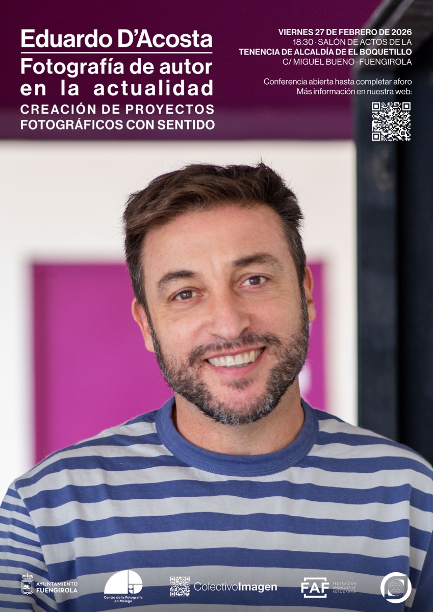 El viernes 27 de febrero a las 18:30 tendrá lugar en el Salón de actos de la Tenencia de Alcaldía de El Boquetillo una charla sobre la creación de proyectos fotográficos con sentido, por el profesor y fotógrafo Eduardo D'Acosta.