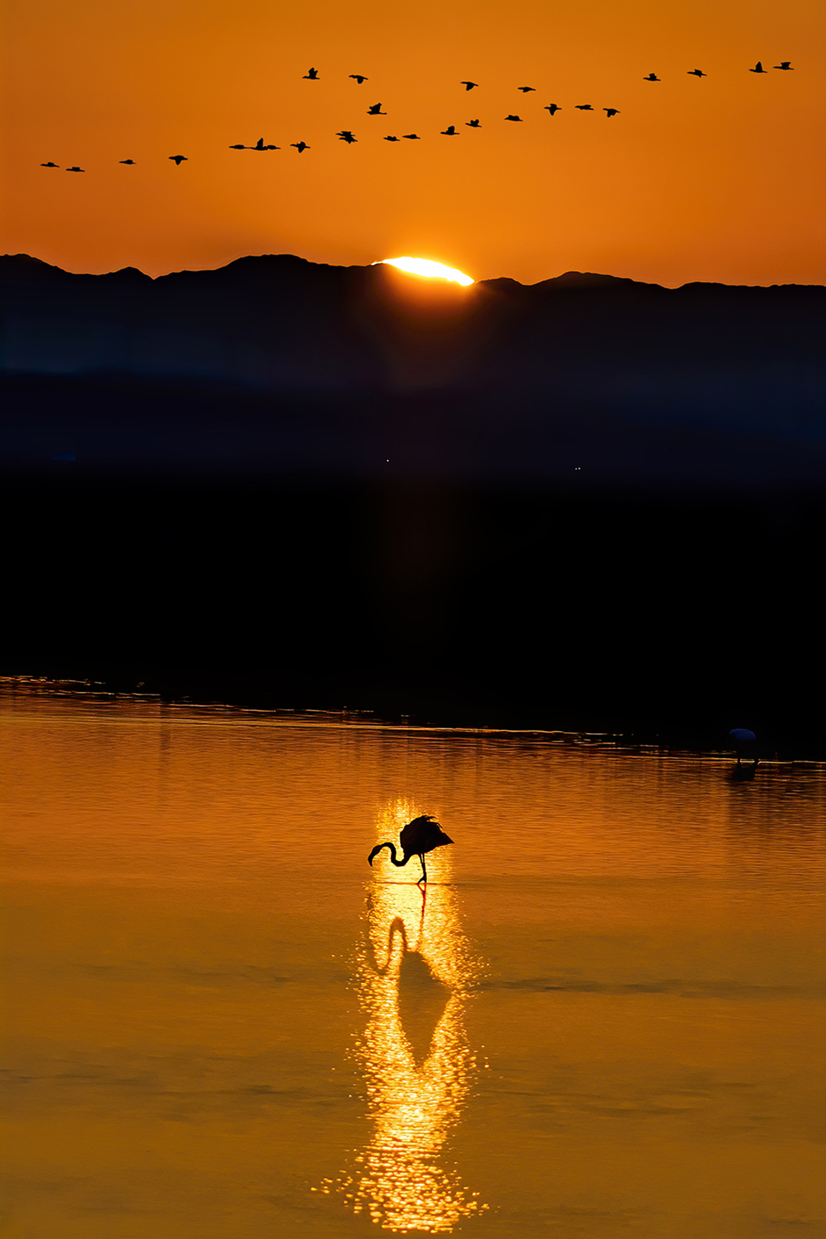 Flamenco al amanecer en las marismas de Doñana